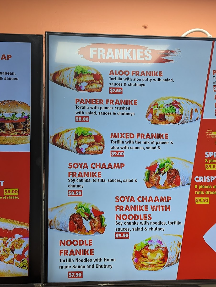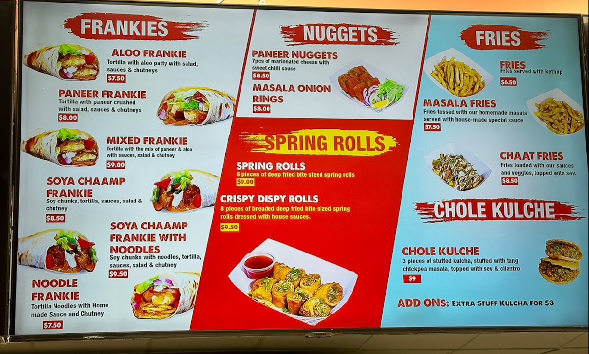 The fusion of Indian flavors with classic fast food staples like burgers and hot dogs is truly a treat for your taste buds. The Frankie options, such as the Paneer Frankie and Mix Frankie, are bursting with bold flavors and textures. And don't forget to try their signature Fries Chat, loaded with sauces, veggies, and topped with sev for an added crunch.